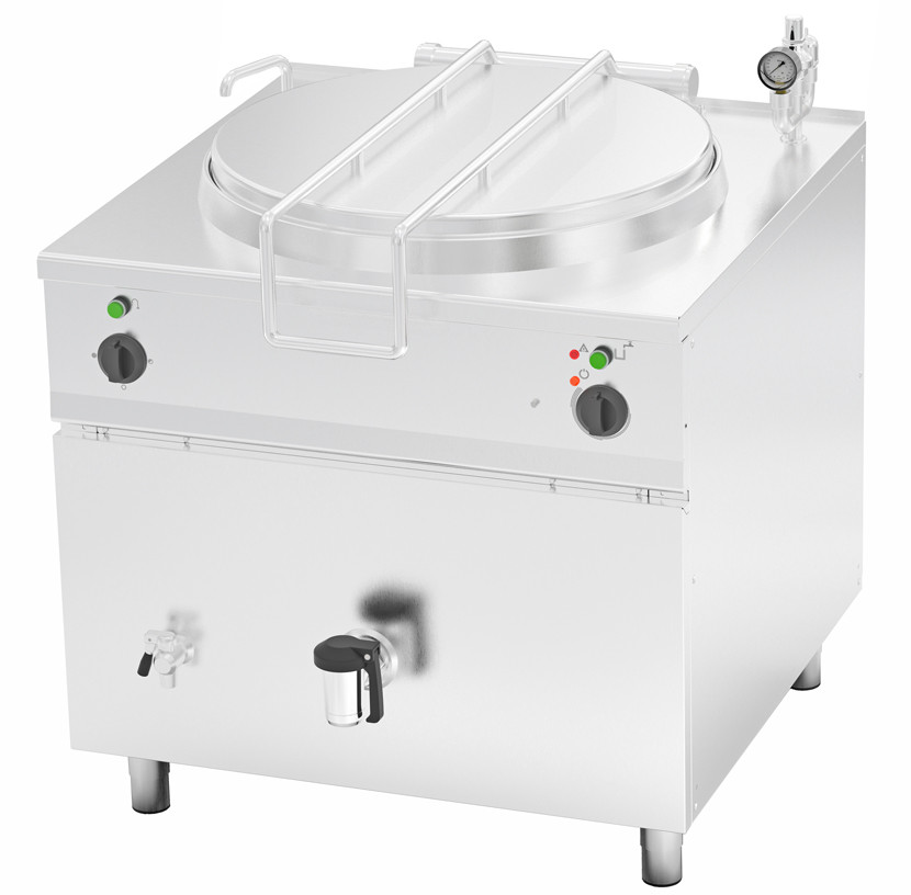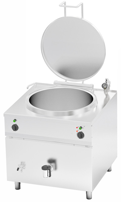 Робота котла заснована на пароводяному принципі нагріву чаші - вода подається в так звану "сорочку" навколо чаші і нагрівається нагрівальним елементом, тепло від води передається на продукт в чаші котла плавно і рівномірно по всьому об'єму чаші, виключаючи пригорання їжі.